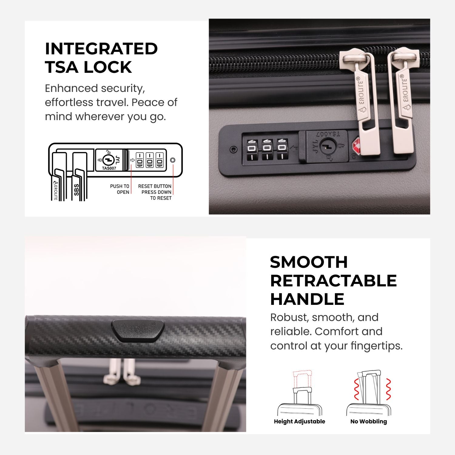 Lightweight Yet Tough Hard Shell: Constructed from premium ABS material – lightweight for easy lifting, but strong enough to withstand knocks, scrapes, and busy airport handling.