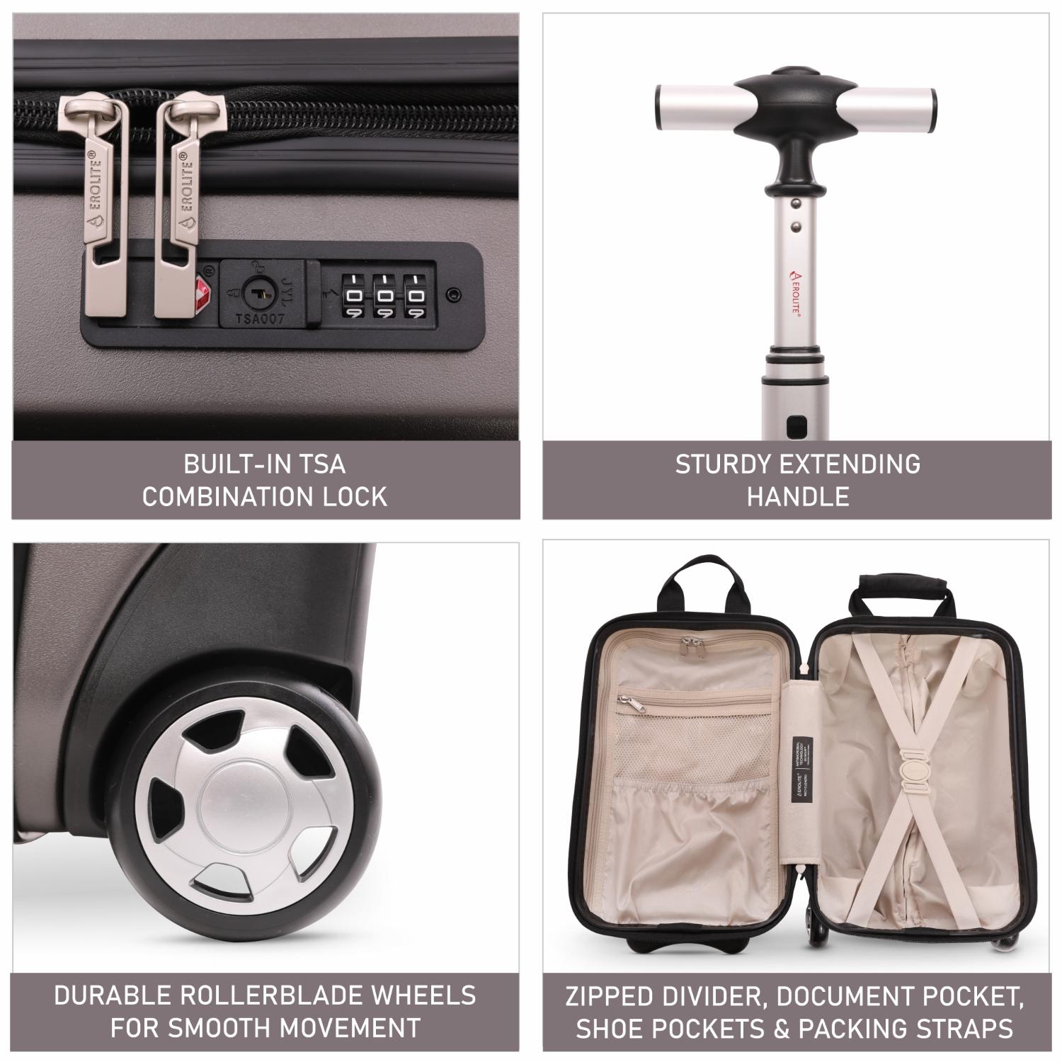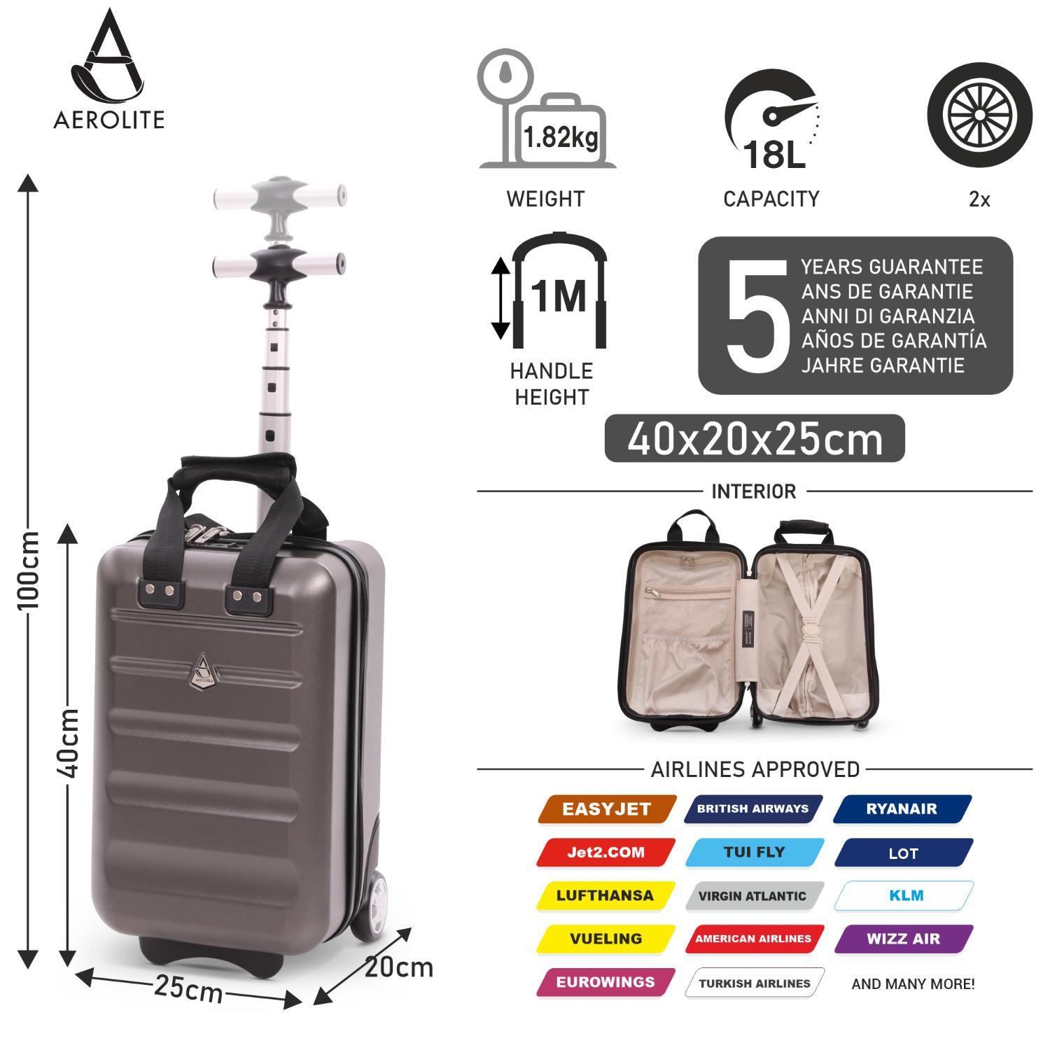 Aerolite 40x20x25cm Ryanair Approved Cabin Bag – Lightweight 2-Wheel Hard Shell Underseat Luggage with TSA Lock – Eco-Friendly Interior – Charcoal