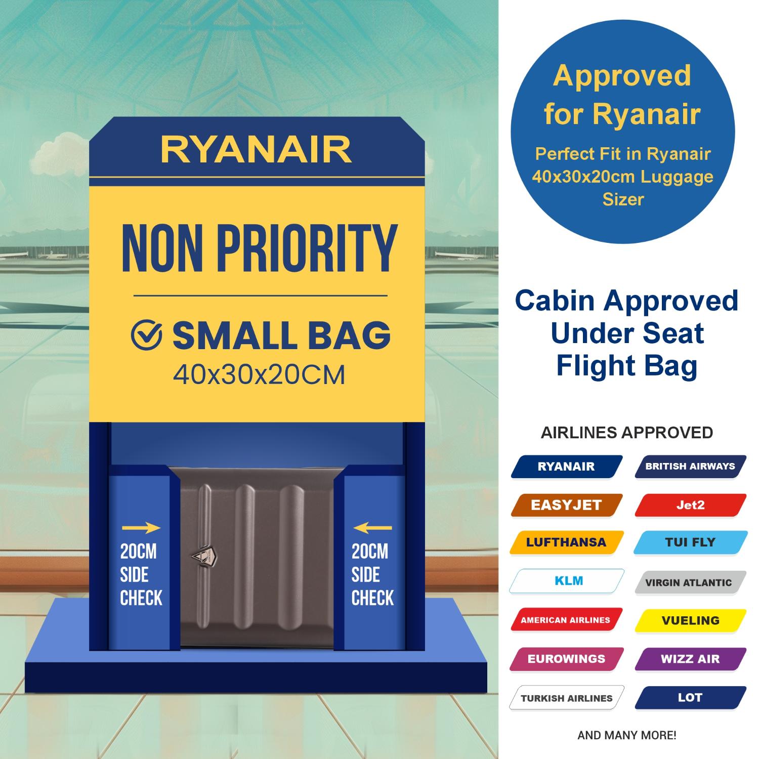 - Ryanair Compatible Size – Perfectly sized at 40x20x25cm to meet Ryanair’s free underseat bag allowance. Also accepted by easyJet, Wizz Air, Jet2, British Airways, Virgin Atlantic & more.