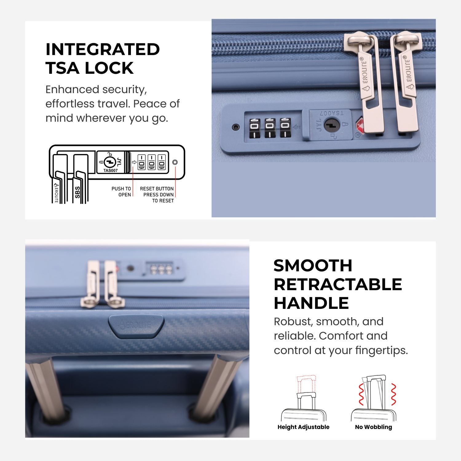Lightweight Yet Tough Hard Shell: Constructed from premium ABS material – lightweight for easy lifting, but strong enough to withstand knocks, scrapes, and busy airport handling.