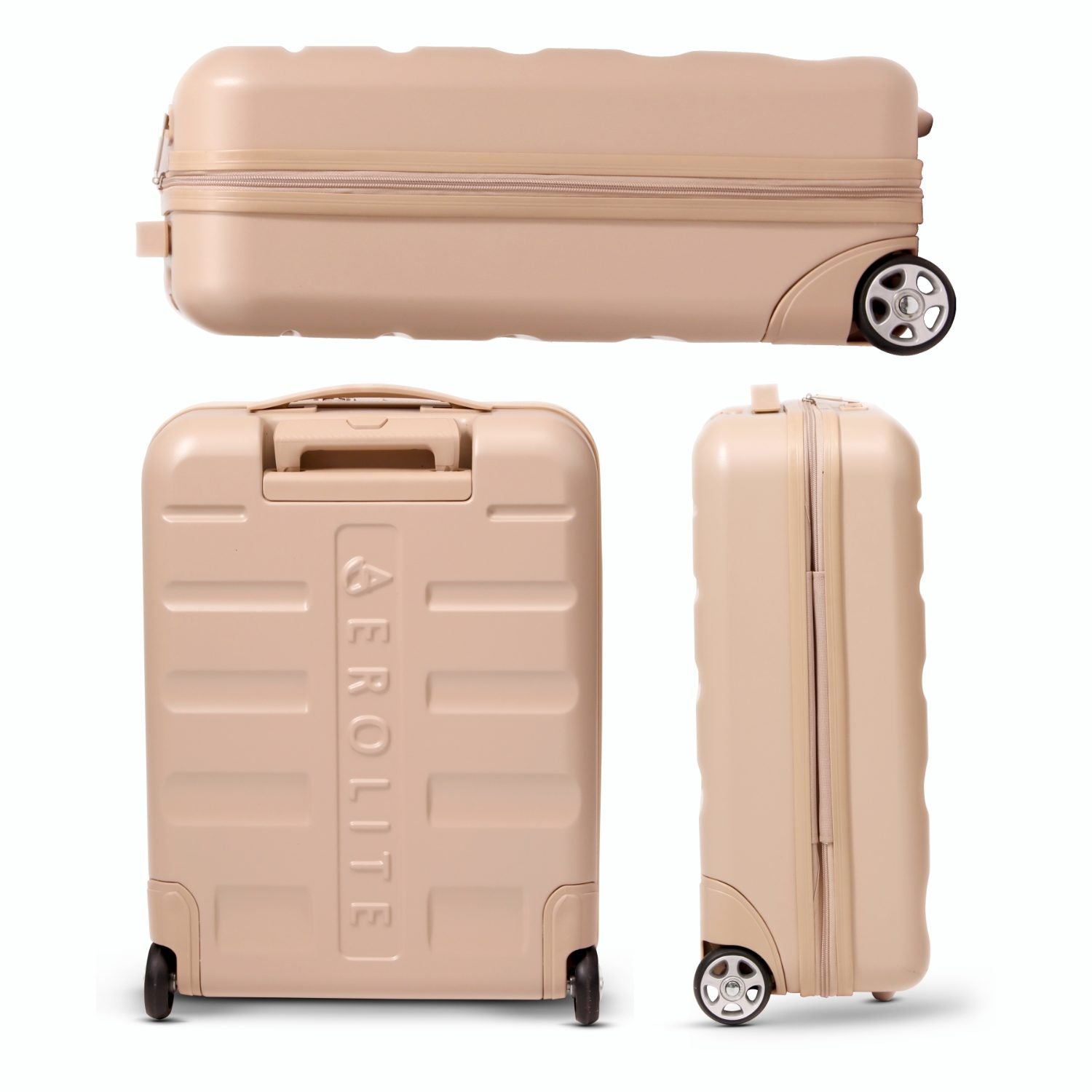 Aerolite Expandable Cabin Suitcase 55x40x20cm Ryanair Priority Max Size, Expands to 55x40x23cm for Lufthansa & Wizz Air Priority, Hard Shell 2-Wheel Carry-On Trolley with TSA Lock, 40–46L Capacity, Beige
