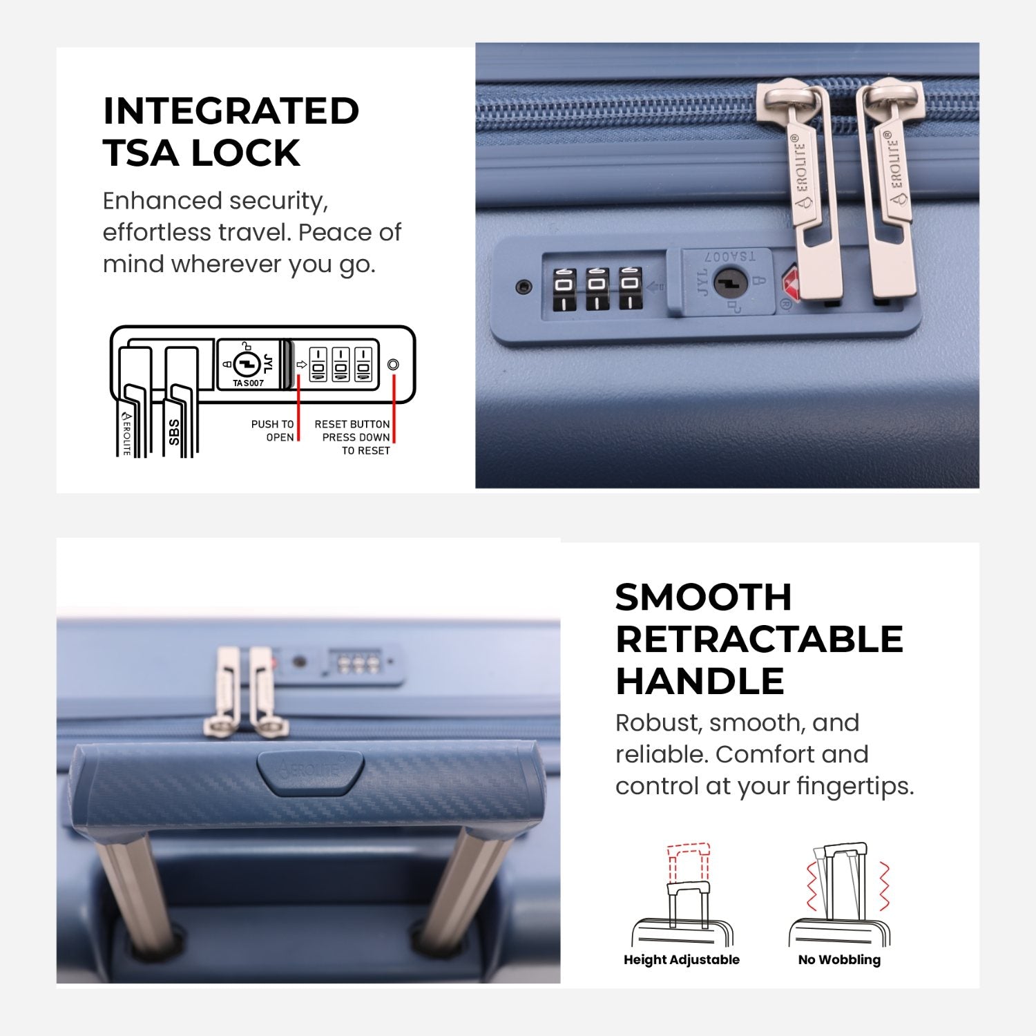 TSA-Approved Lock: Built-in TSA combination lock keeps your items safe while allowing airport security checks without damage.