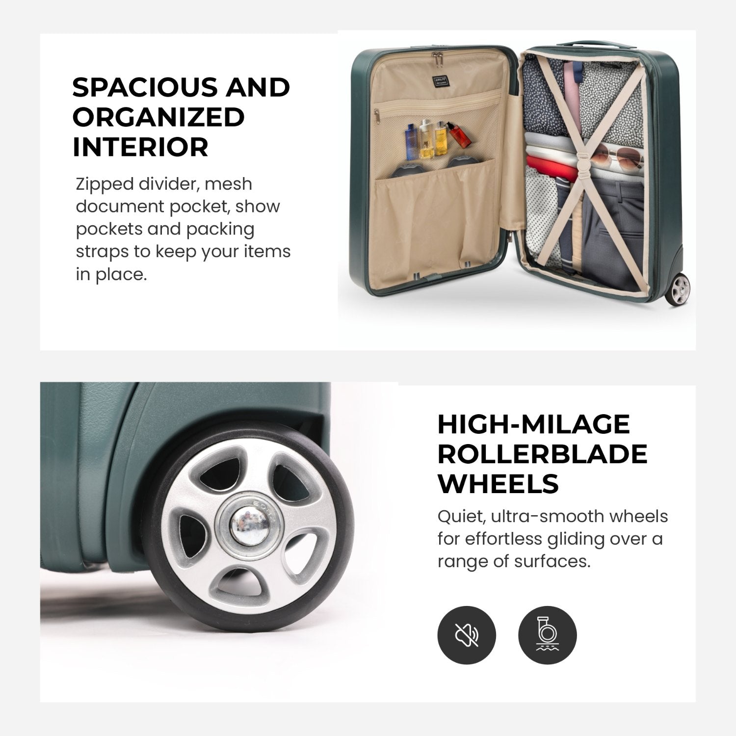 Smooth 2-Wheel Stability: Fitted with rollerblade-style wheels for quiet, effortless rolling, plus a stabilising stopper to keep the case upright in queues and during transfers.