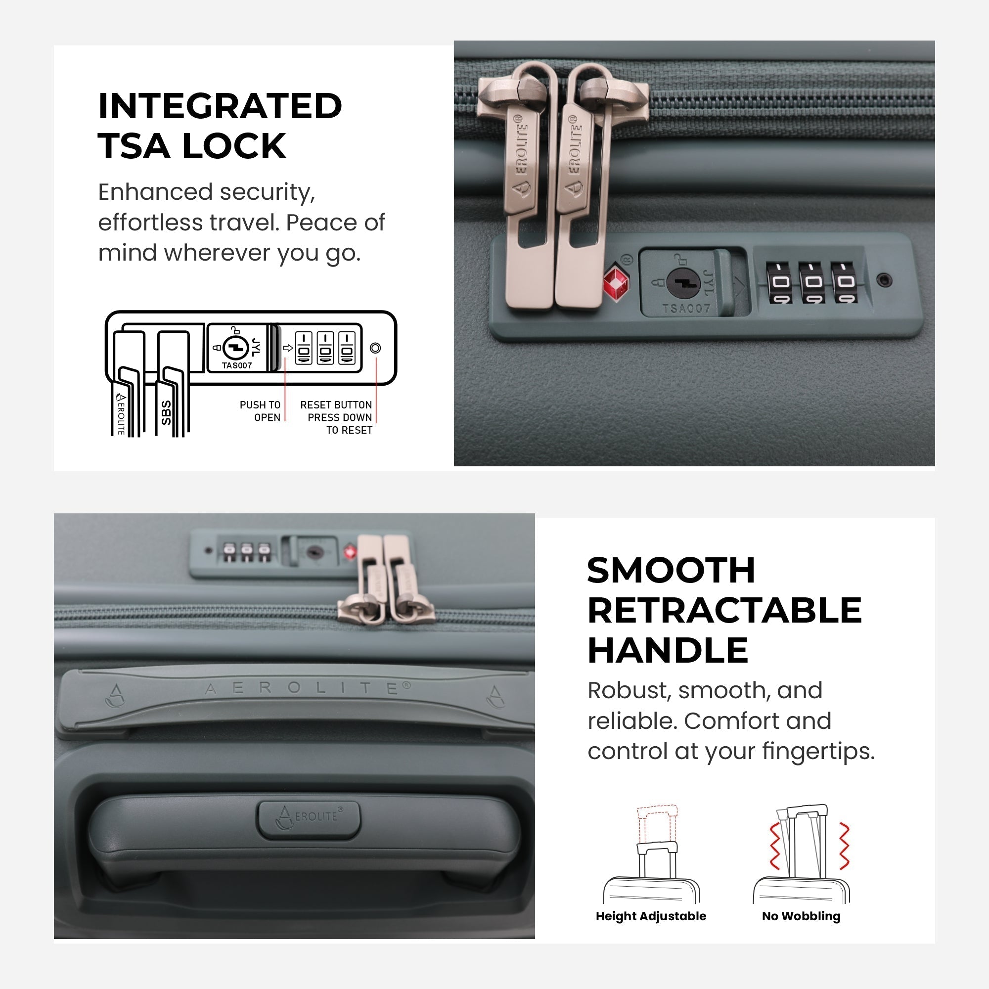 - Effortless Maneuverability: Both cases are equipped with 4 dual 360° spinner wheels for smooth, effortless rolling in any direction, and a height-adjustable aluminum telescopic handle for easy handling.