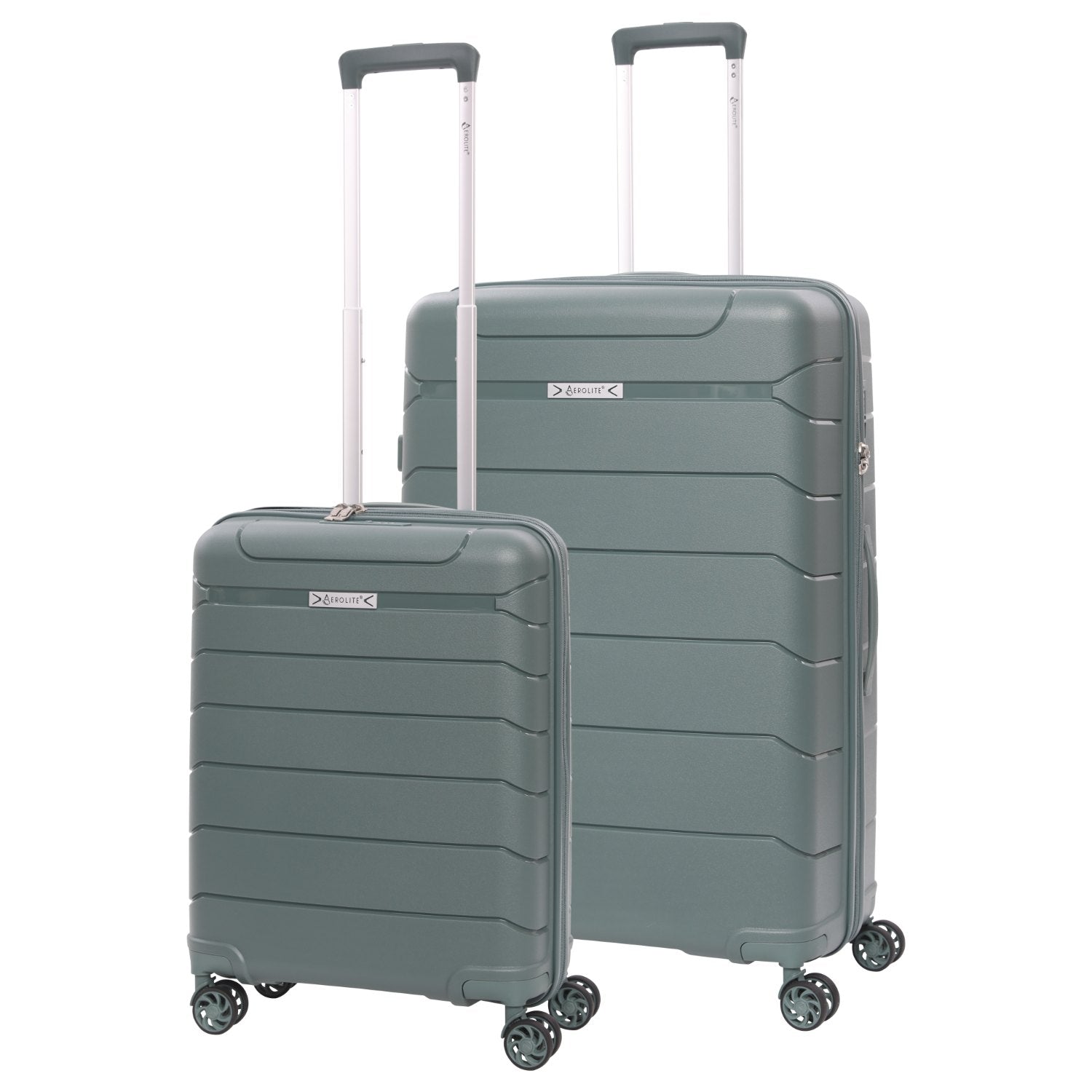 Aerolite Premium PP 2-Piece Luggage Set, Lightweight Polypropylene Hard Shell Suitcases with 4 Dual Spinner Wheels & TSA Lock, Expandable Cabin (21”), Large (28”), Dark Green